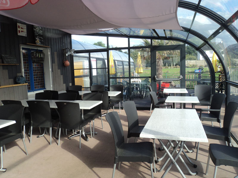 Le bar/restauration sur place (moules frites de la baie de Saint brieuc), avec vue sur la mer, propose, en outre, sa spécialité de moules de la baie. Le matin, il est possible d’avoir du pain, viennoiseries et le journal local .